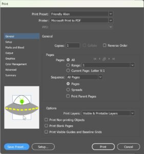 - Create a new Print Preset and name it “Friendly Alien” and save the preset.