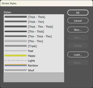 If you want to have these styles available for all documents, open InDesign but don’t open a document. Just follow above steps and the stroke styles will be available in every future document. You can always delete them later on.
