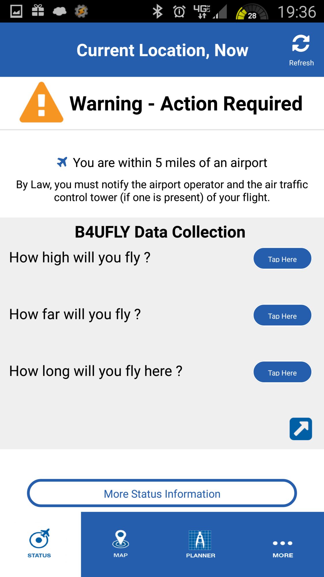 Loading the data, once you open the B4UFLY app, takes forever. I am not used to that, but I could live with it. So far, I am not too thrilled about the app, but let’s see what happens in the future. I hope the FAA will put some more effort into this app and develop a great app for drone operators. The design layout also needs some work, as it looks like a port from iOS.