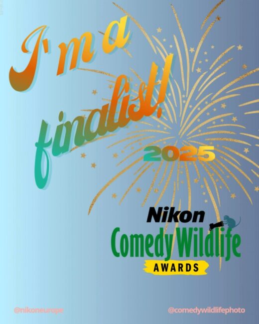 It really means a lot to me to make it that far in such a renowned photo contest. On October 23, 2025 the finalists were announced to the press and now all the photos are in the final judging phase. The Over All Winner, Category Winners and Highly Commended Winners will be announced at the Nikon Comedy Wildlife Awards night on 9th December, 2025 in London at the Oxo Gallery.