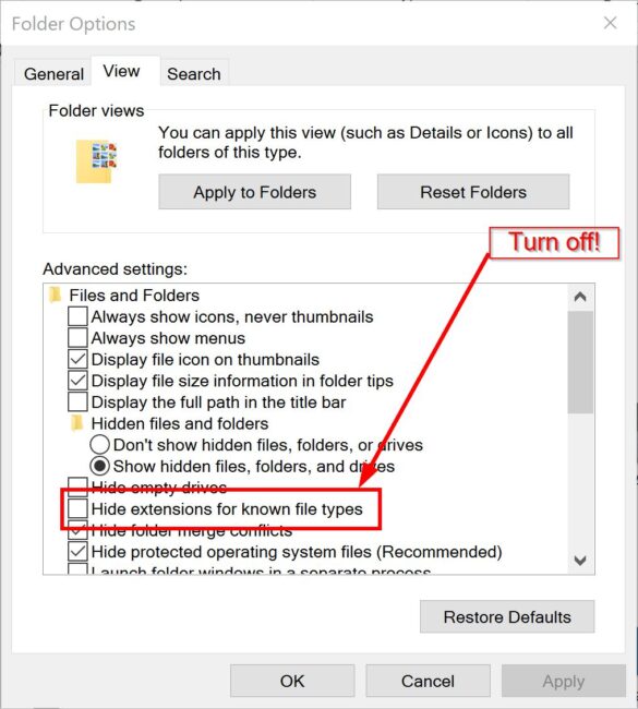 - Set to show file extensions in Windows