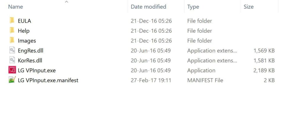 - Rename the manifest.txt file according to your program and follow this pattern: Program Name.exe.manifest. In my case, it was LG VPInput.exe.manifest