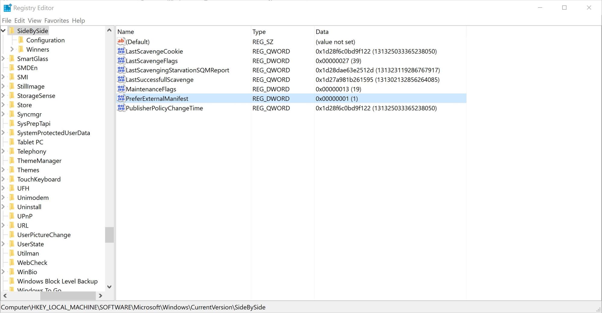- Browse to HKEY_LOCAL_MACHINE > SOFTWARE > Microsoft > Windows > CurrentVersion > SideBySide