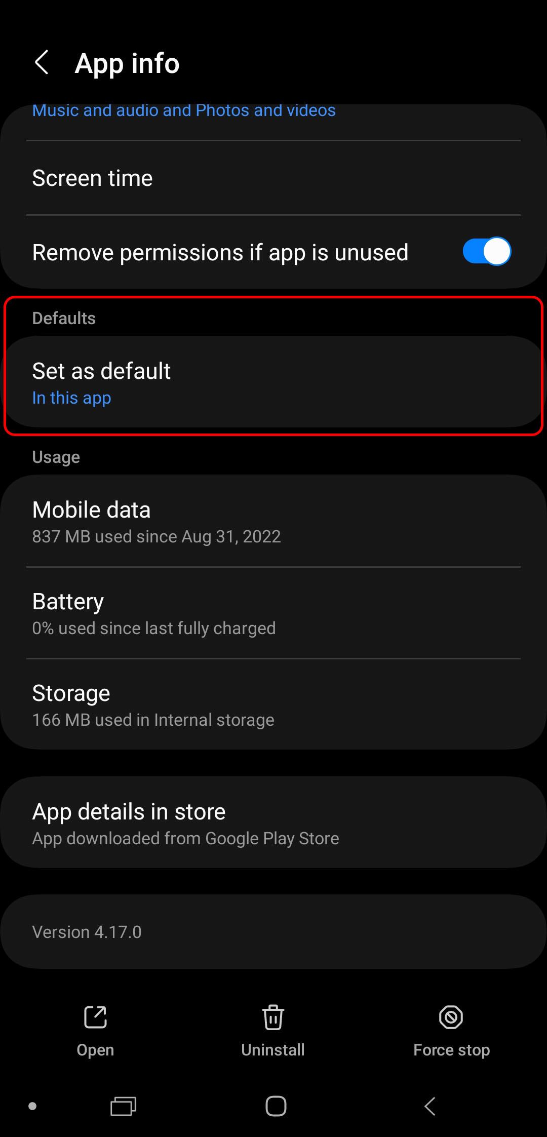 - Now you see a wealth of information. Find the “Defaults” section and click on “Set as default“.